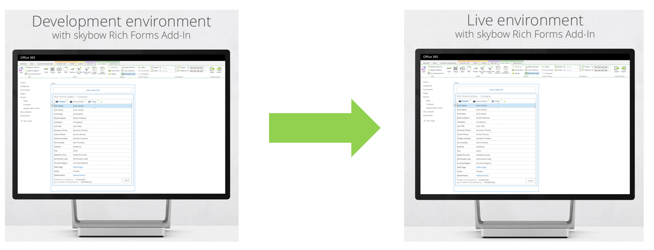 Let's assume that there is a Development and a Live environment with the exactly same configured Form everything configured with skybow Rich Forms.