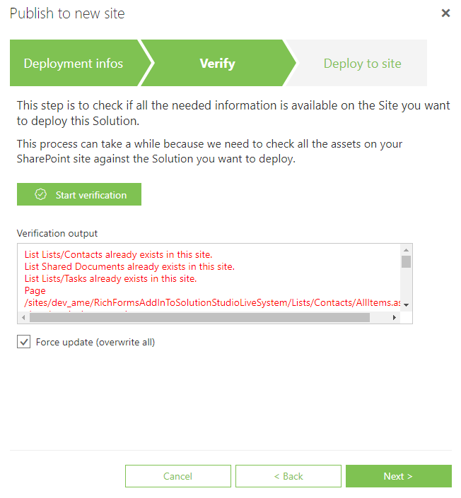 During deployment in verification step you need to select Force Update!