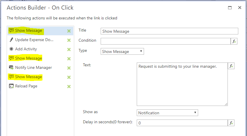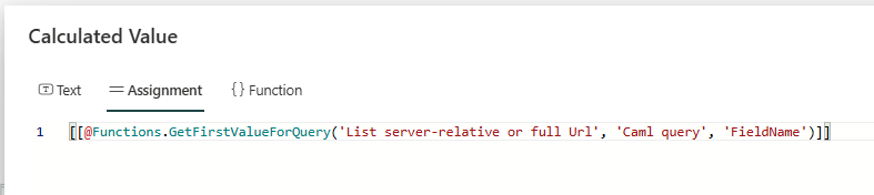 To help you with that, there is a simple to use CAML Query Builder available in every expression builder in the lower left corner. Once you have configured the correct query, you can insert it directly using the query functions in the lower right corner of the CAML Query Builder: -