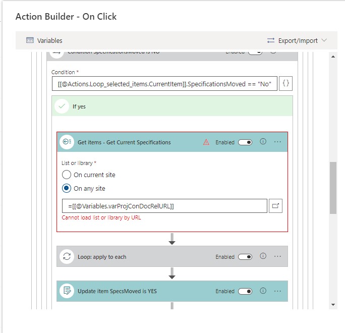 I am guessing it is not possible to use a Variable or the Output of a previous Action when using 'On any site'... whether it be Add Item, Get Items, Copy Item, etc.