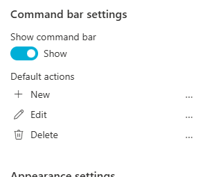 Would it be possible to not just have New, Edit and Delete at the command bar of a list when used as a sub item?