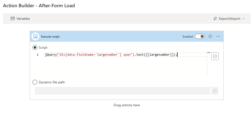 var numberSpan = document.querySelector("[data-fieldname='OTSMP'] .sb-field-value span"); if (numberSpan) { var originalText = numberSpan.textContent || ""; var cleanedText = originalText.replace(/\./g, ""); numberSpan.textContent = cleanedText; numberSpan.closest("[data-fieldname='OTSMP']").style.visibility = "visible"; }Any hints?