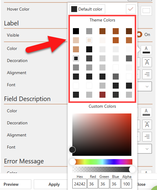 Please read more details here: skybow Modern Forms - Styling & Conditional Formatting introduction