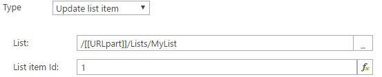 });where [[URLPart]] should be full or relative url to the site where you want to update the list.