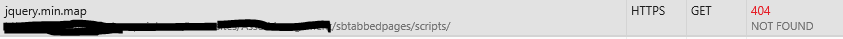 I have checked and the sbtabbedpages/scripts location is accessible but there is no file called jquery.min.map in there. Is this a known bug and does anyone know how I can get this resolved?