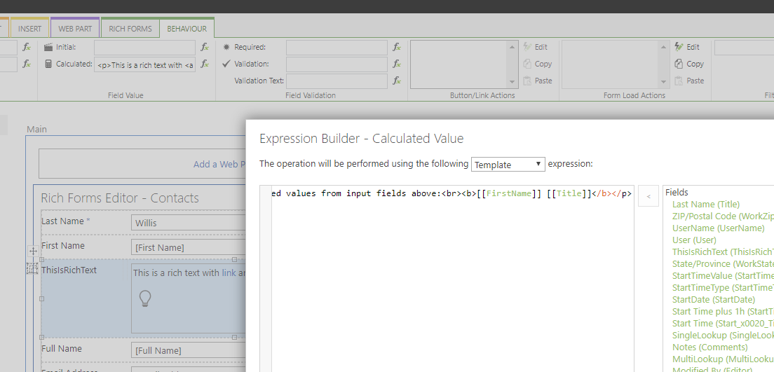 The text of a rich text field cannot be set by expressions, can't it?
