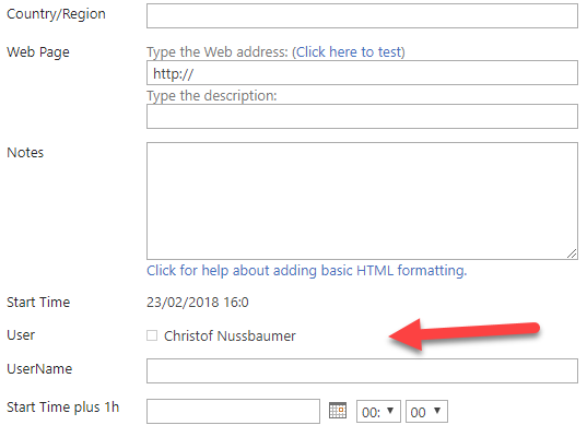 The user field is working fine.