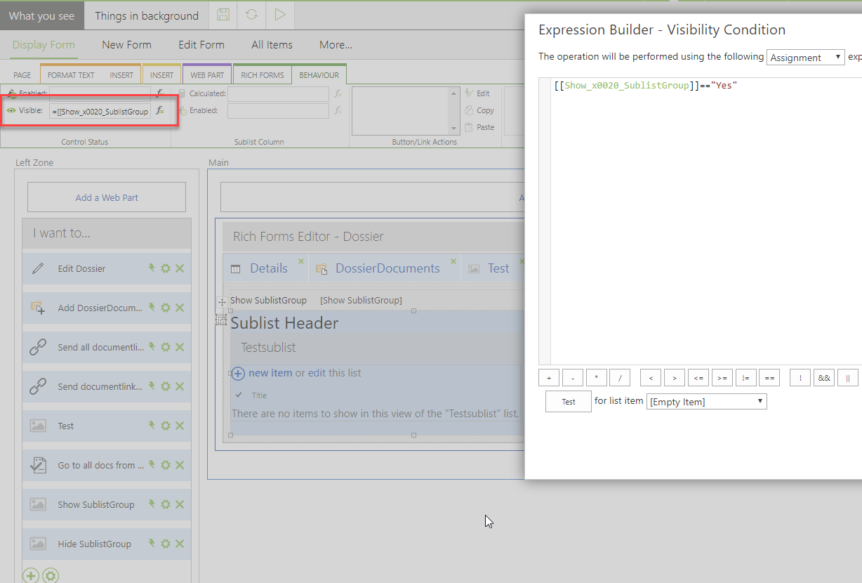 I Have a Group with header and in there a sublist. Now i would like to show this groupe only if there is some content in the context of these dossier.