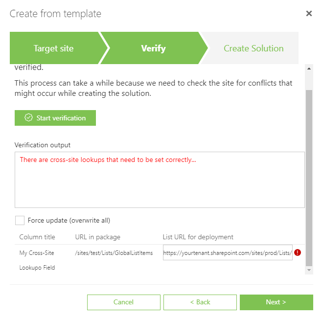 For deployments you can correct cross-site lookup source during verification step: