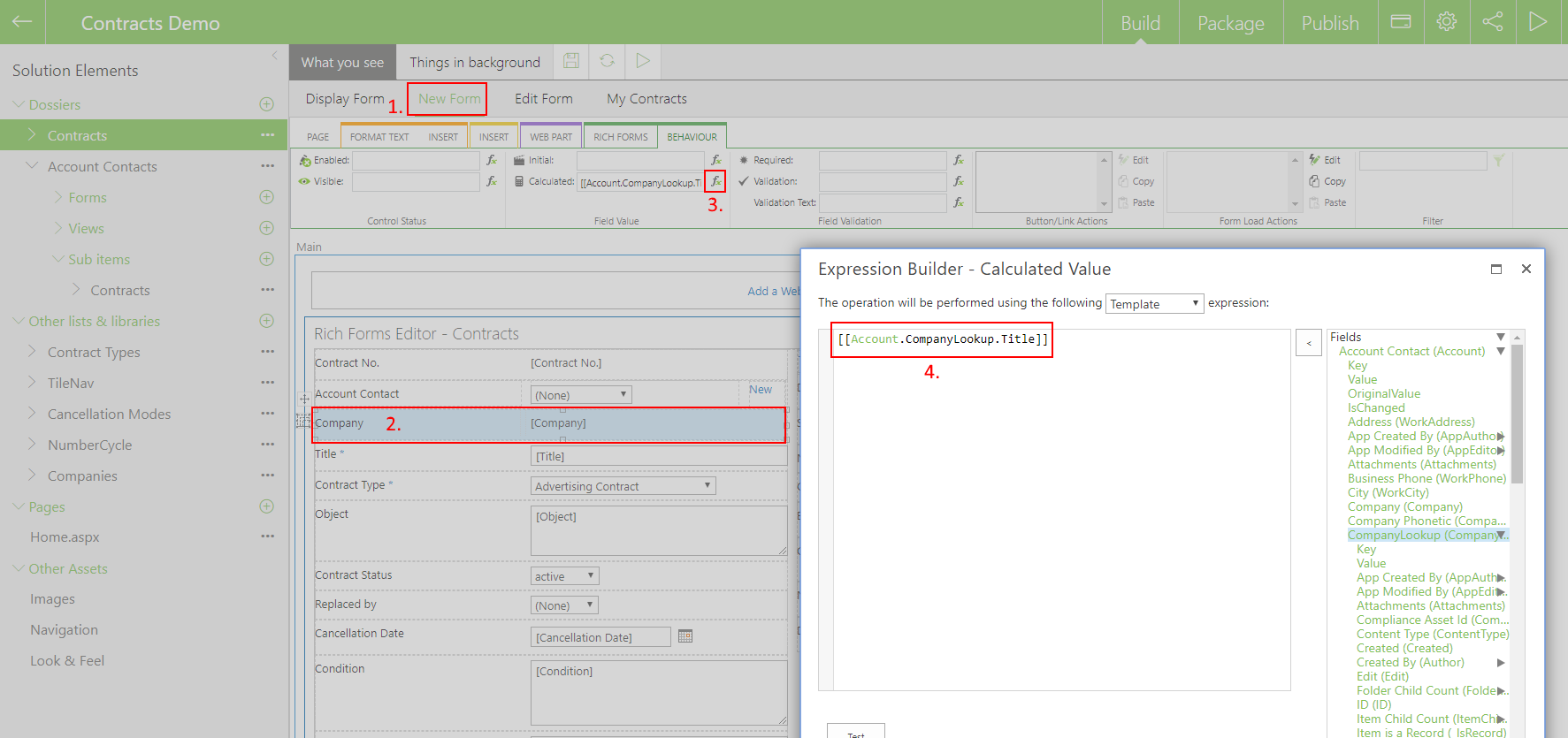AnsweredI have a Dossier with Contracts and Clients, but the Clients list has a lookup to another list with the client's company name. How can I pull the Company associated with the Client selection into the Contracts?