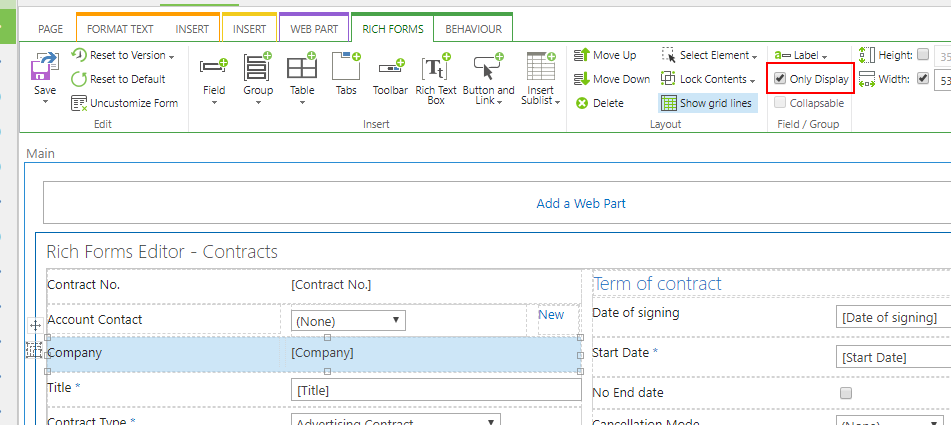 Within the Clients list I added a lookup to the Company list I created (only contains the company names). A contract and client can only have the same company. I.e. The client (Client A) at the company (Company A) is the owner of the contract (Contract A). That won't ever change.