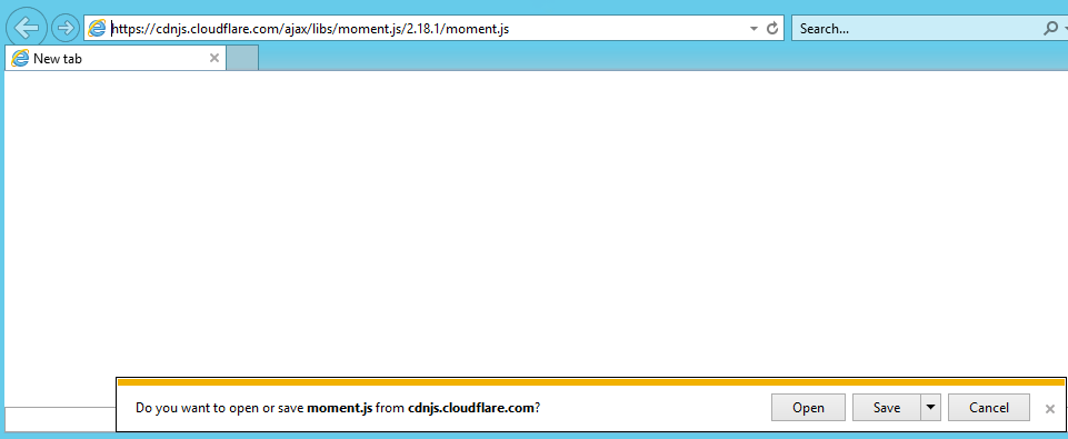 Please check if you have connection to the moment library with the client by typing libraries browser address. If download of moment.js is shown you can load it as you did. If it's not available this way you have to provide it somewhere in your environment and link to this.