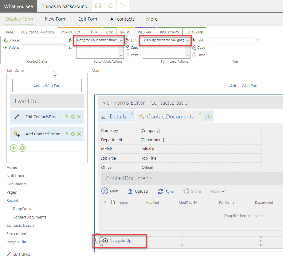 setFolderNavigateLinkVisibility();Replace ContactsDossier and ContactDocuments with list/library names of your solution.