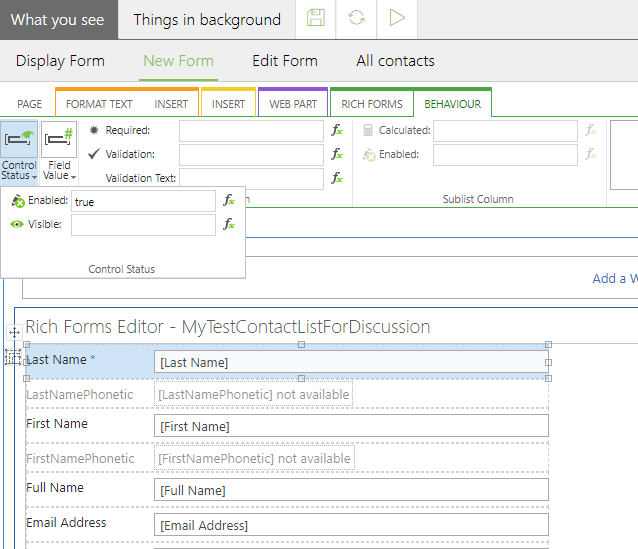 Behaviour New Form with sublist